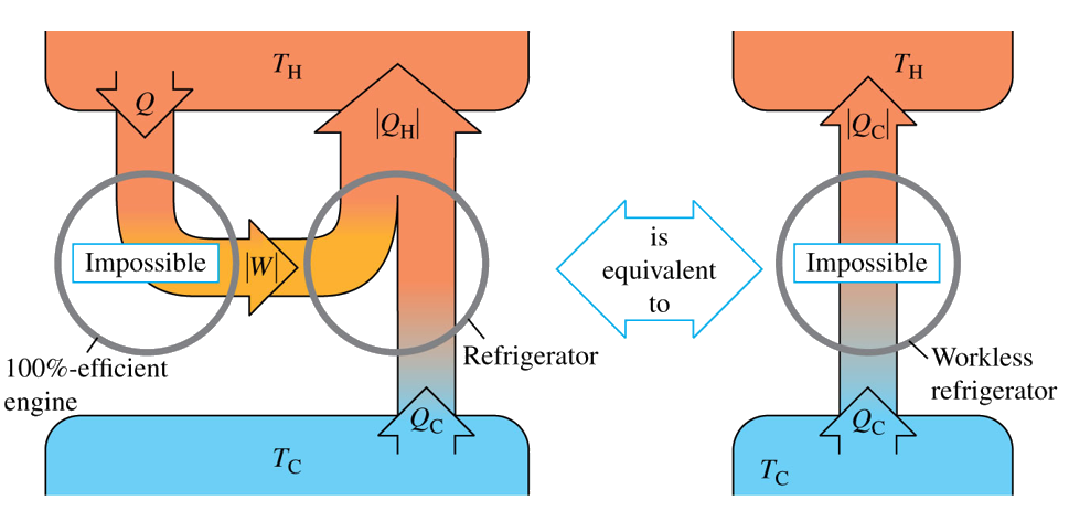 There is also another definition called Clausius statement or the refrigerator statement which states “It is impossible for any process to have as its sole result the transfer of heat from a cooler to hotter body.” As I said before these definitions are all same in principle. They just differ from each other by the way they built and their application area.